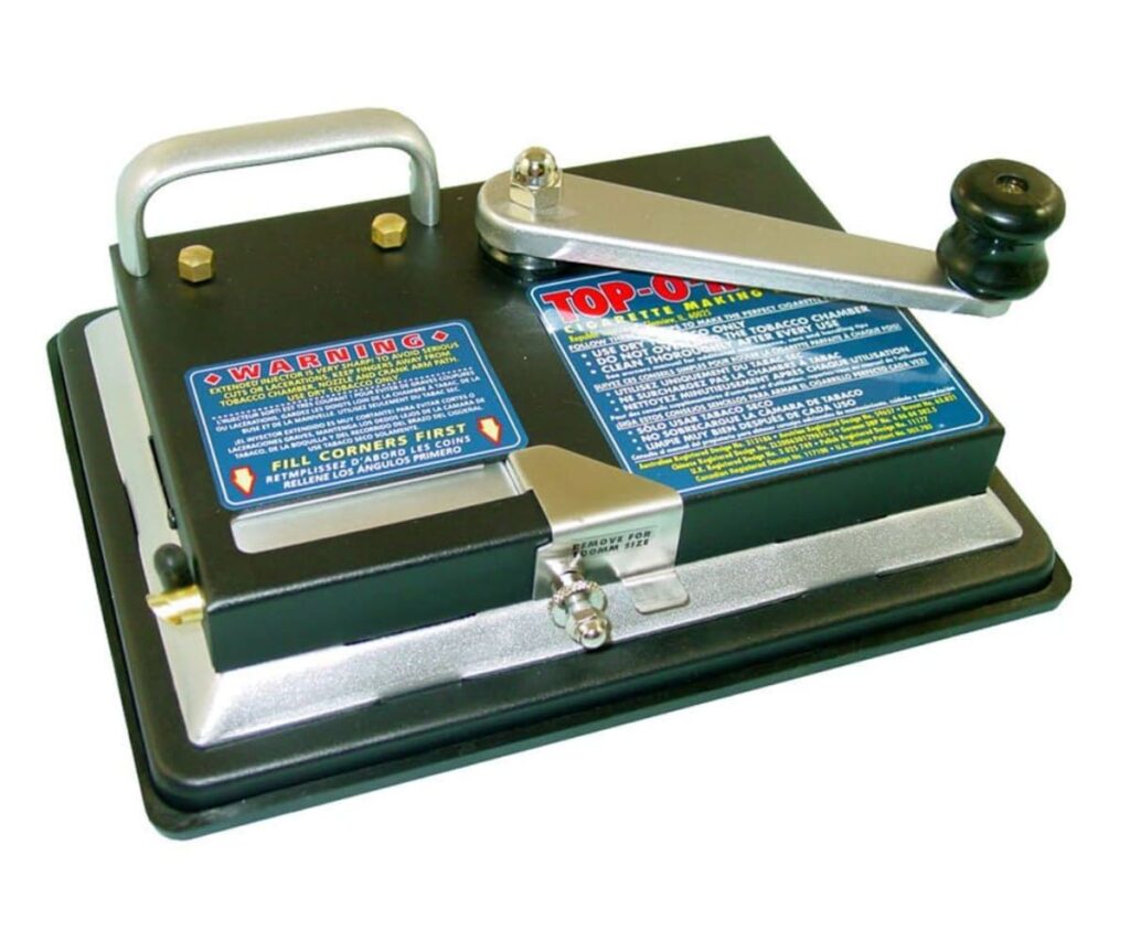 The Top-O-Matic T2 is a manual cigarette rolling machine known for its durable metal construction and precision engineering, making it a favorite among those who prefer a hands-on approach to rolling their own cigarettes.